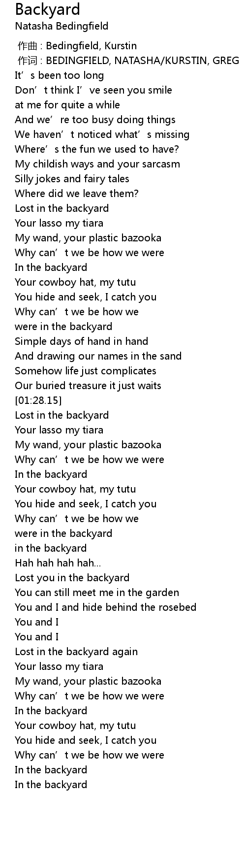 | [00:01.00] | zuò cí : BEDINGFIELD, NATASHA KURSTIN, GREG |