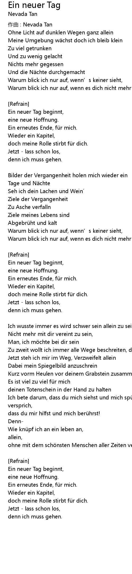 | Song | Ein neuer Tag |