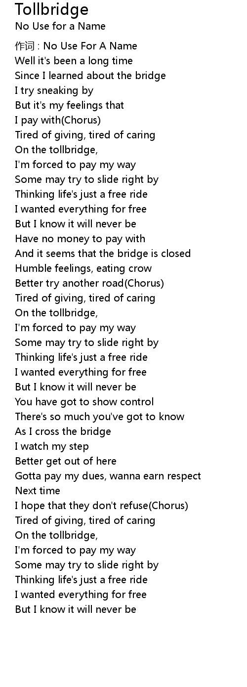 | Song | Tollbridge |