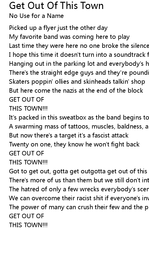 Got to get out, gotta get outgotta get out of this town |