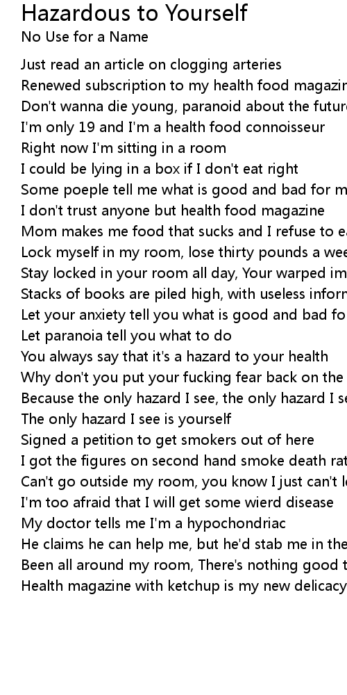 The only hazard I see is yourself |