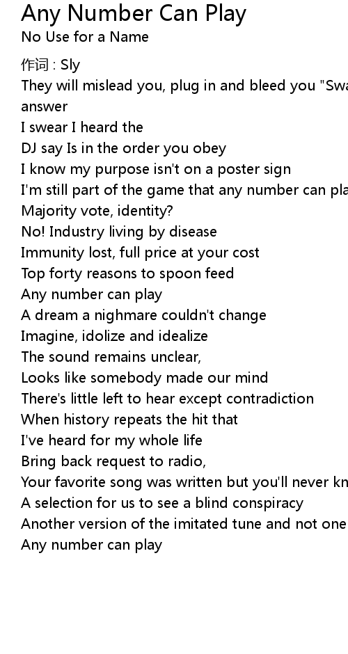 | Song | Any Number Can Play |