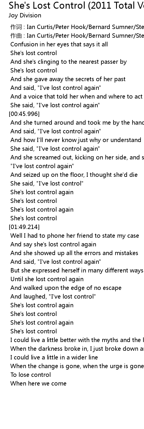 | [02:51.390] | And laughed, " I' ve lost control" |