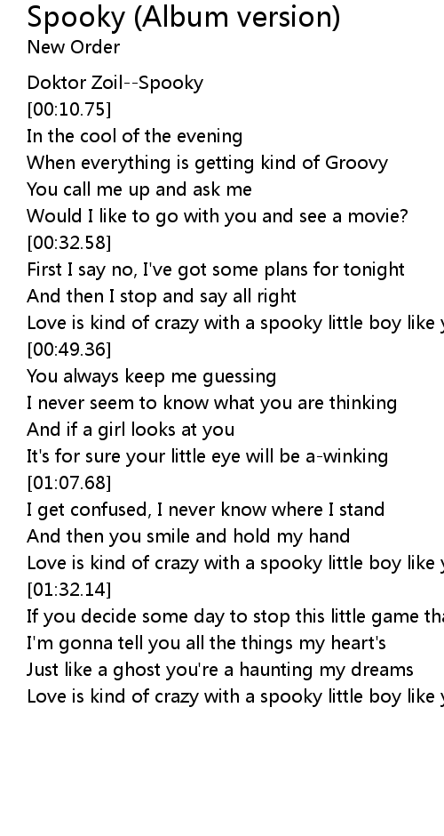 | [01:18.35] | Love is kind of crazy with a spooky little boy like you Spooky |