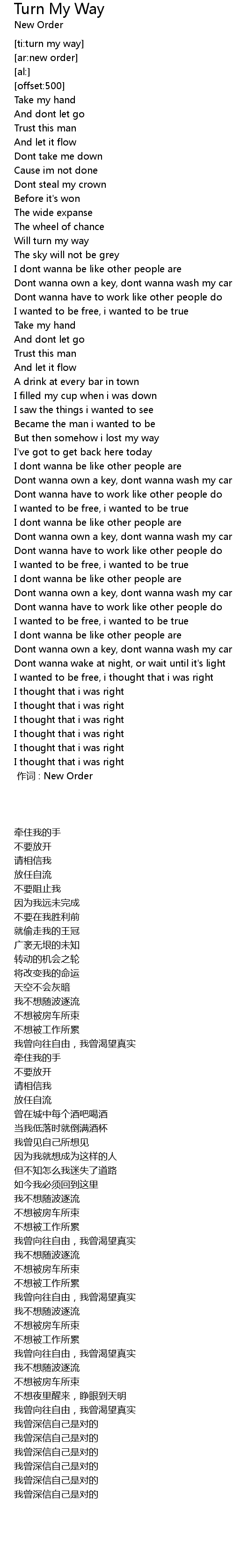 | [00:00.00] | 作词 : New Order |