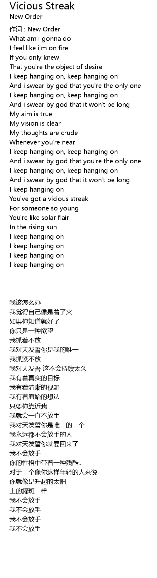 | I keep hanging on, keep hanging on | |