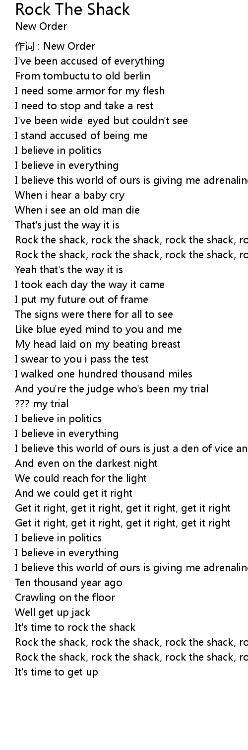 | Rock the shack, rock the shack, rock the shack, rock the shack | |