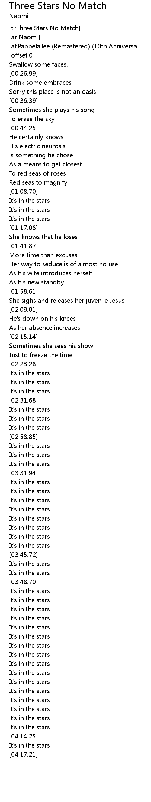 [ti:Three Stars No Match] |