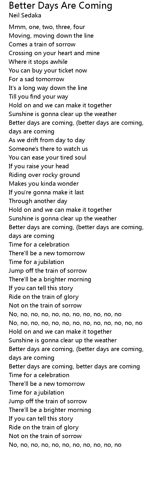 Better days are coming, (better days are coming, better days are coming) better days are coming |