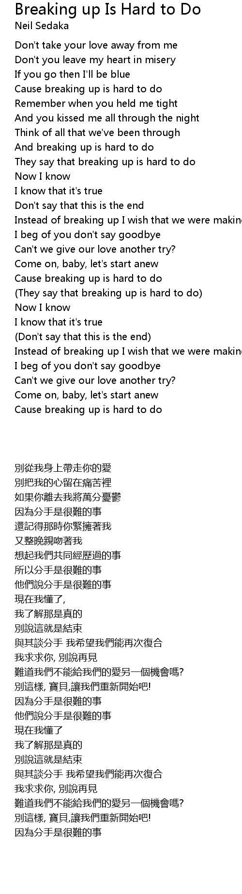 (They say that breaking up is hard to do) |