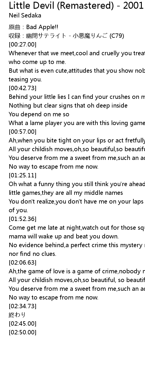 | [00:22.50] | 収録:幽閉サテライト - 小悪魔りんご (C79) |