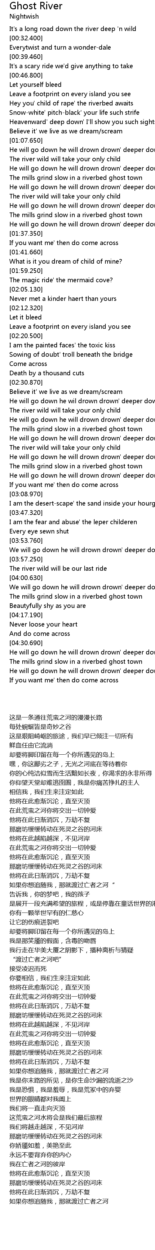 | [02:37.500] | The river wild will take your only child |