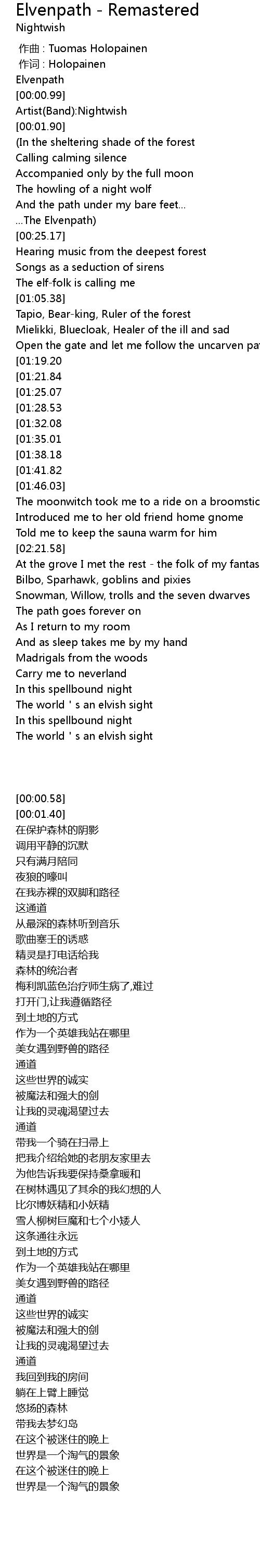 | [00:00.00] | 作曲 : Tuomas Holopainen |