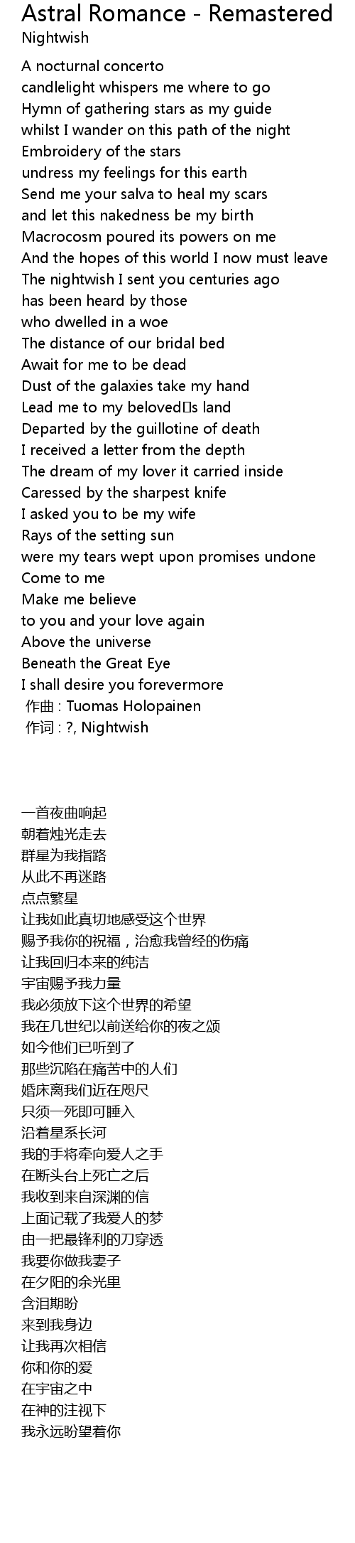 | [00:00.00] | 作曲 : Tuomas Holopainen |