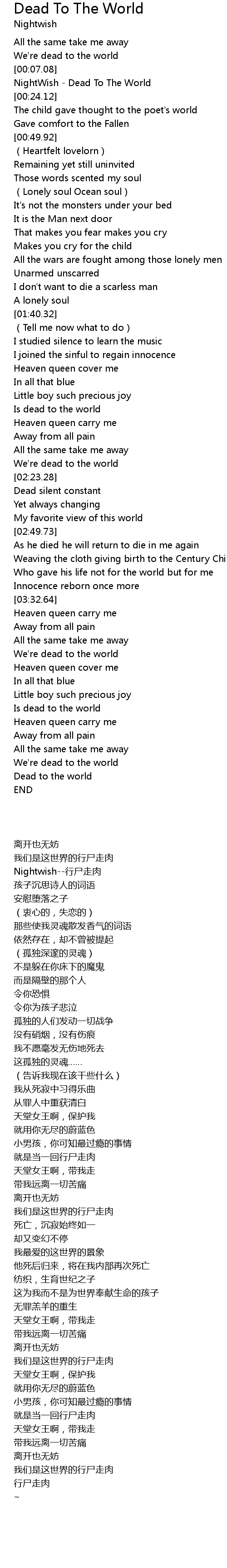 | [03:09.98] | Weaving the cloth giving birth to the Century Child |