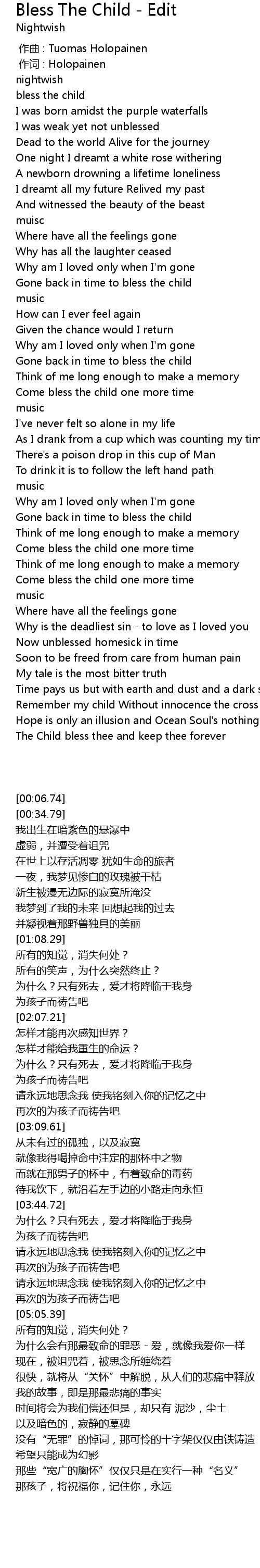 | [00:00.00] | zuo qu : Tuomas Holopainen |