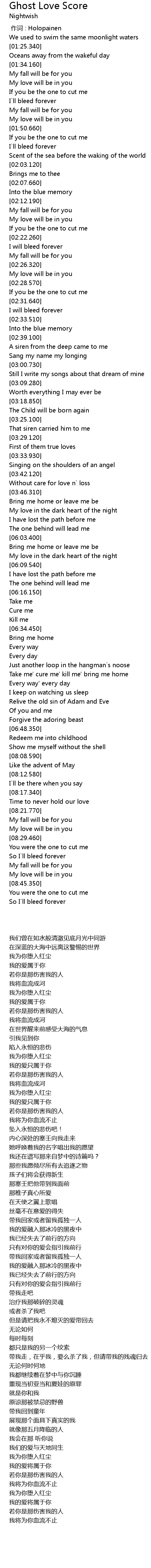 | [00:00.00] | 作词 : Holopainen |
