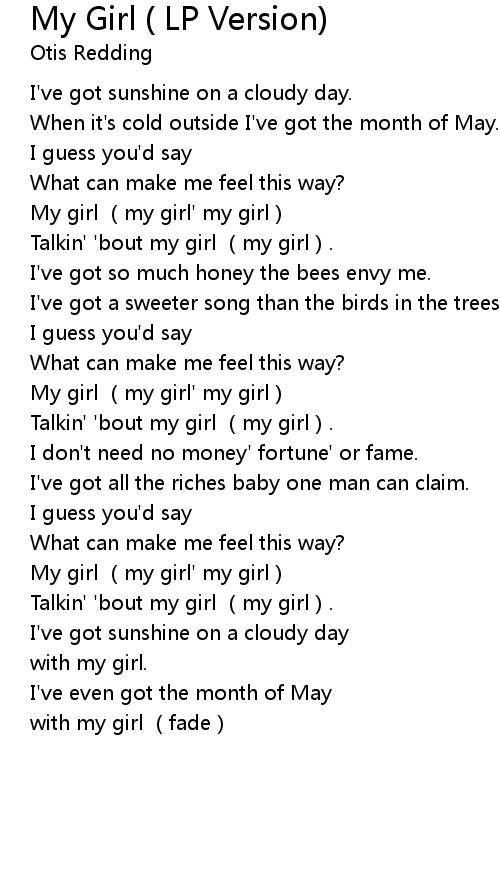 | [00:41] | Talkin' 'bout my girl (my girl). |