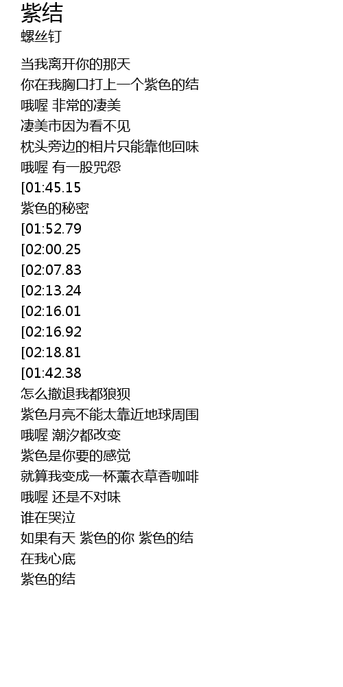 | [00:52.79][02:07.83] | 紫色的结 在我心底 |