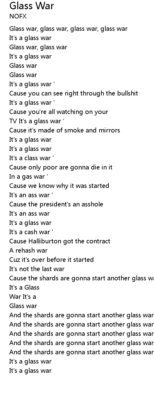 Glass war, glass war, glass war, glass war |