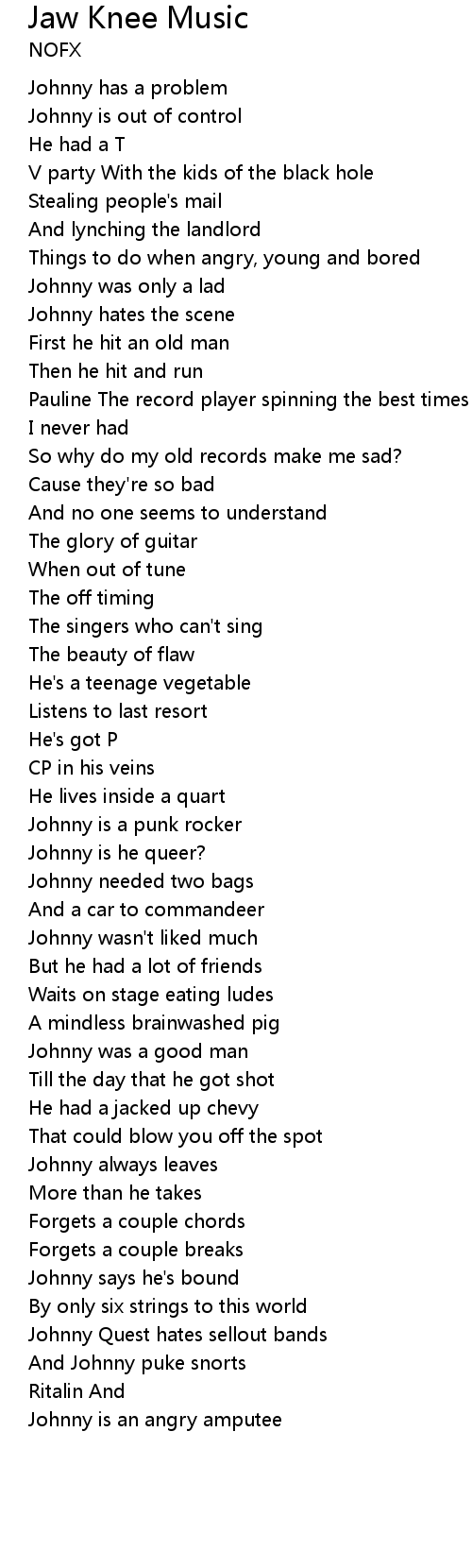 Johnny is out of control |