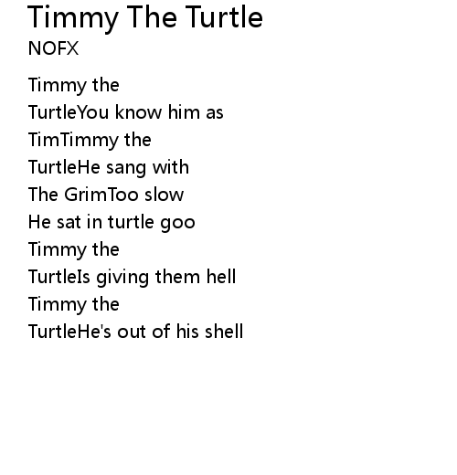 | Song | Timmy The Turtle |
