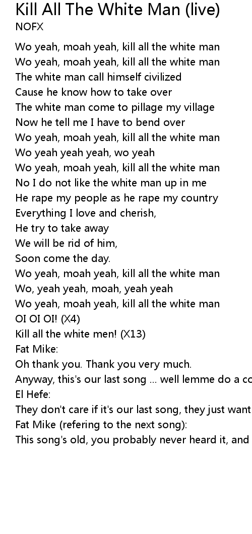 Wo yeah, moah yeah, kill all the white man |