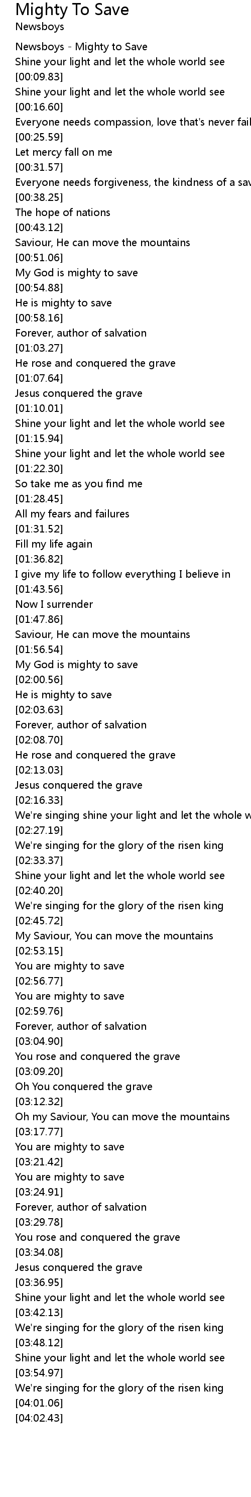 Newsboys - Mighty to Save |