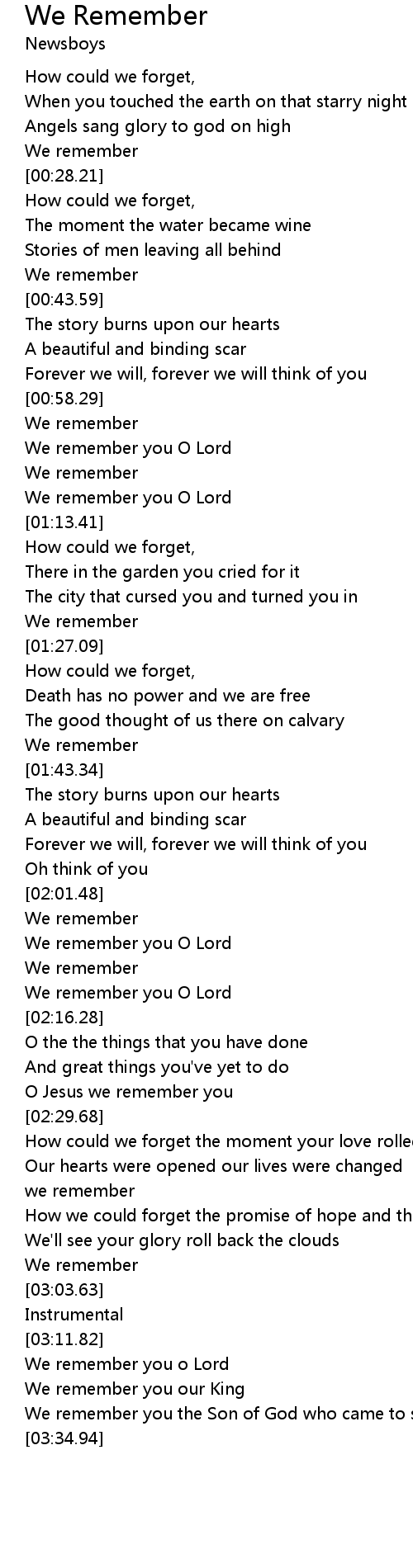 We remember you o Lord |