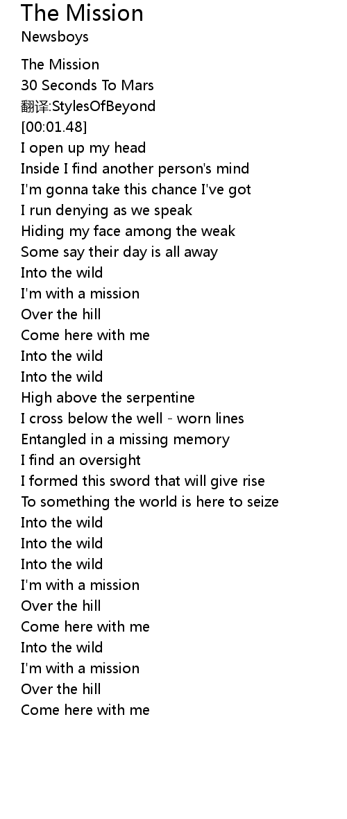 | [00:23.40] | I'm with a mission |