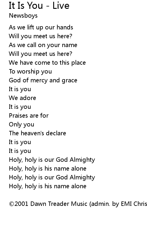 | 2001 Dawn Treader Music admin. by EMI Christian Music Publishing SESAC |