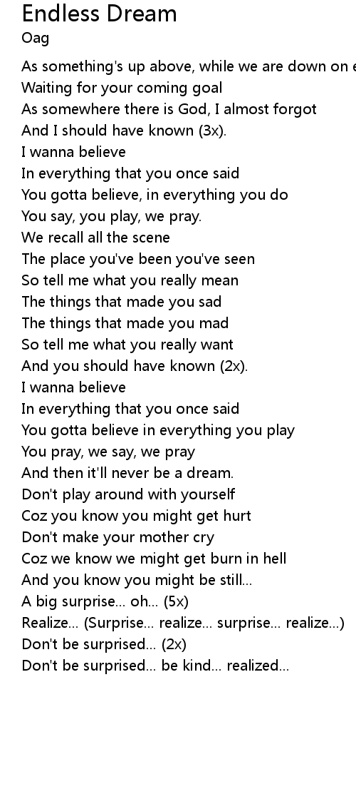And then it'll never be a dream. |