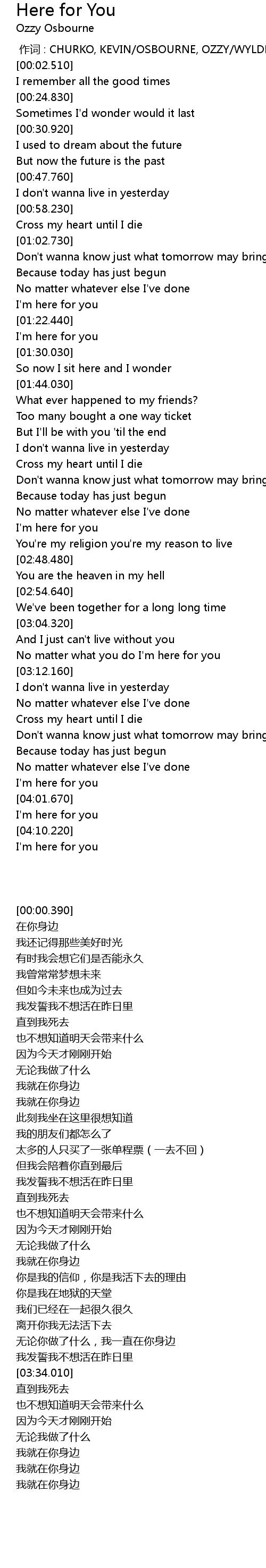 | [00:00.00] | zuò cí : CHURKO, KEVIN OSBOURNE, OZZY WYLDE, ZAKK |