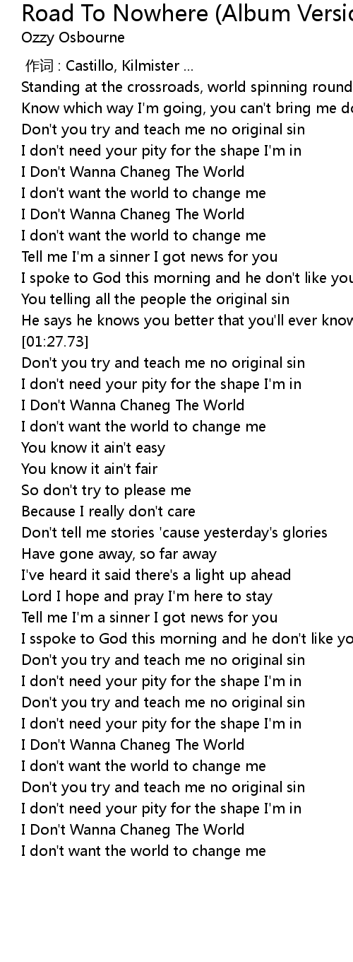 | [00:16.47] | Standing at the crossroads, world spinning round and round |