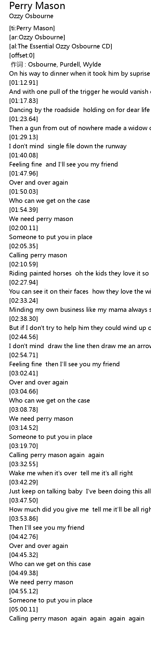 | [05:01.48] | Calling perry mason again again again again |