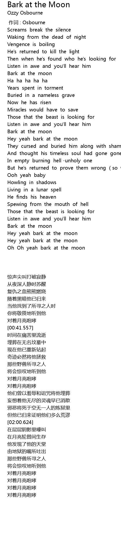 | [03:38.179] | Oh Oh yeah bark at the moon |