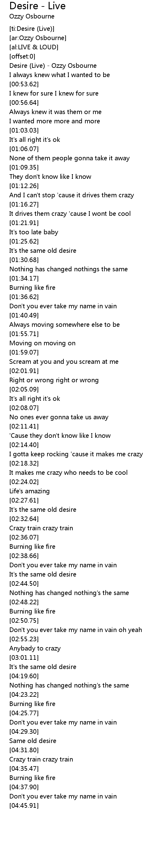 Desire (Live) - Ozzy Osbourne |