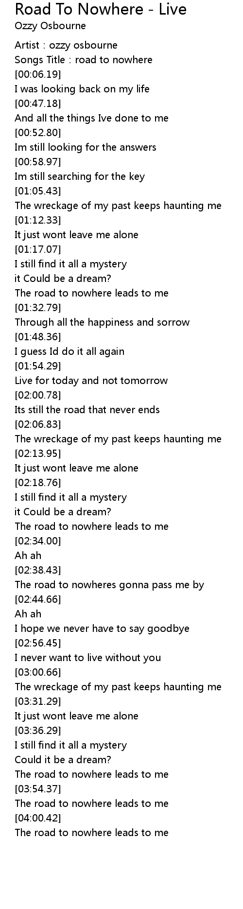 | [02:39.84] | The road to nowheres gonna pass me by |