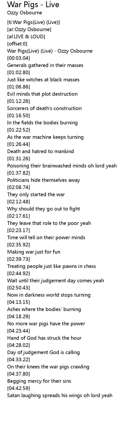 [ti:War Pigs(Live) (Live)] |