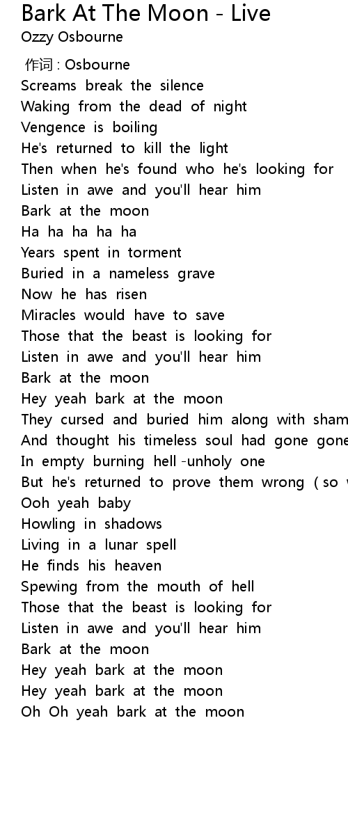 | [03:38.179] | Oh Oh yeah bark at the moon |