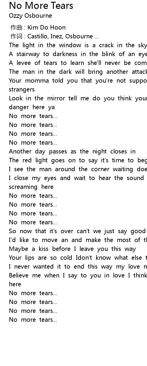 | [00:01.00] | 作词 : Castillo, Inez, Osbourne ... |