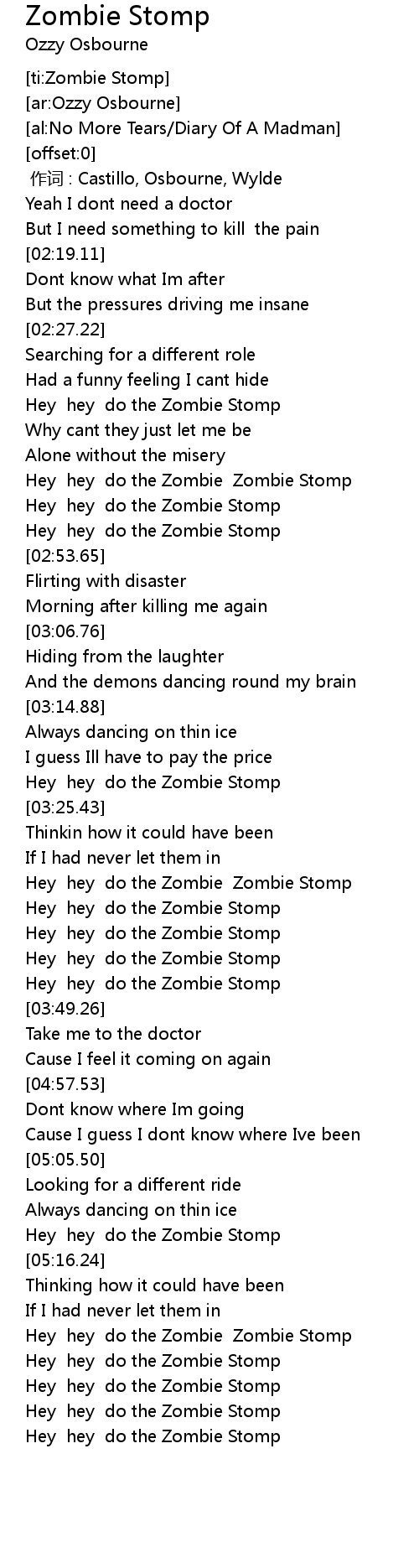| [02:49.40] | Hey hey do the Zombie Stomp |