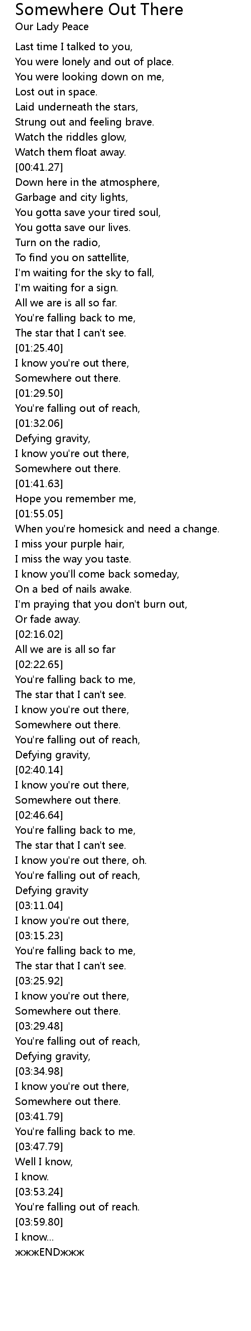 | [01:05.66] | I'm waiting for the sky to fall, |