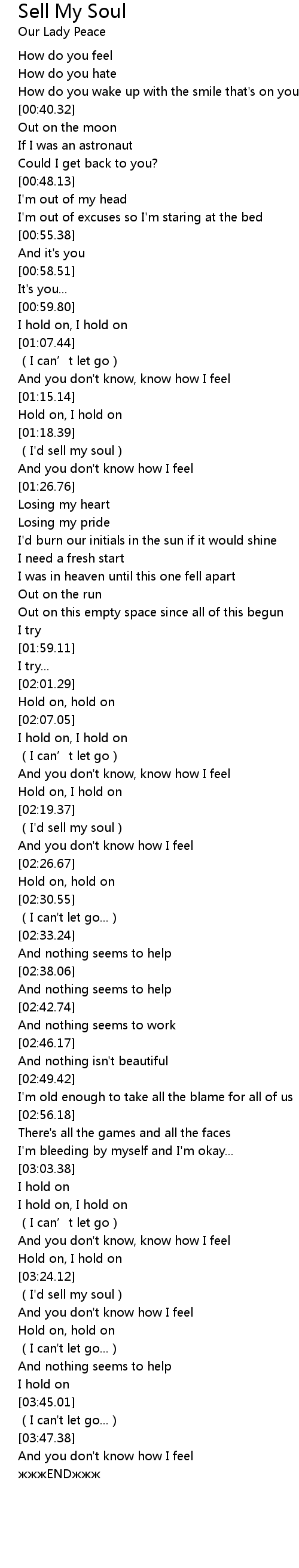 | [02:20.49] | (I'd sell my soul) |