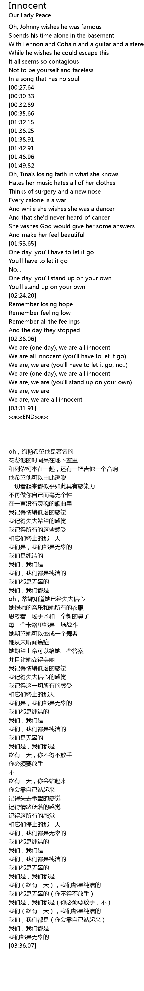 | [03:07.75] | We are all innocent (you'll have to let it go) |