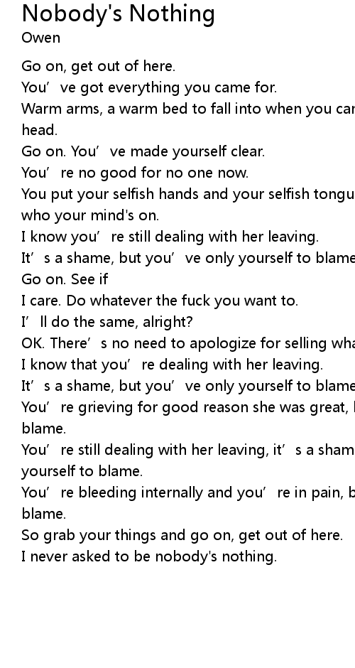 | Song | Nobody's Nothing |