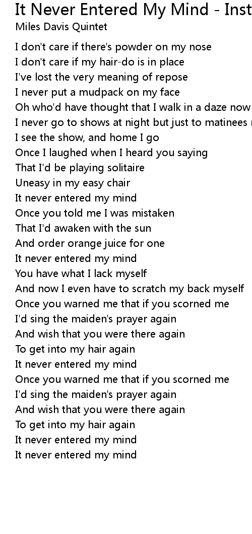 It never entered my mind |