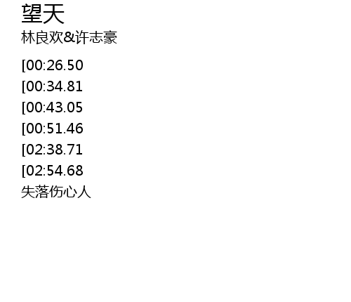 | [03:15.43][02:38.71][00:59.45] | 望天会知 望你会了解 望真心望未来 |