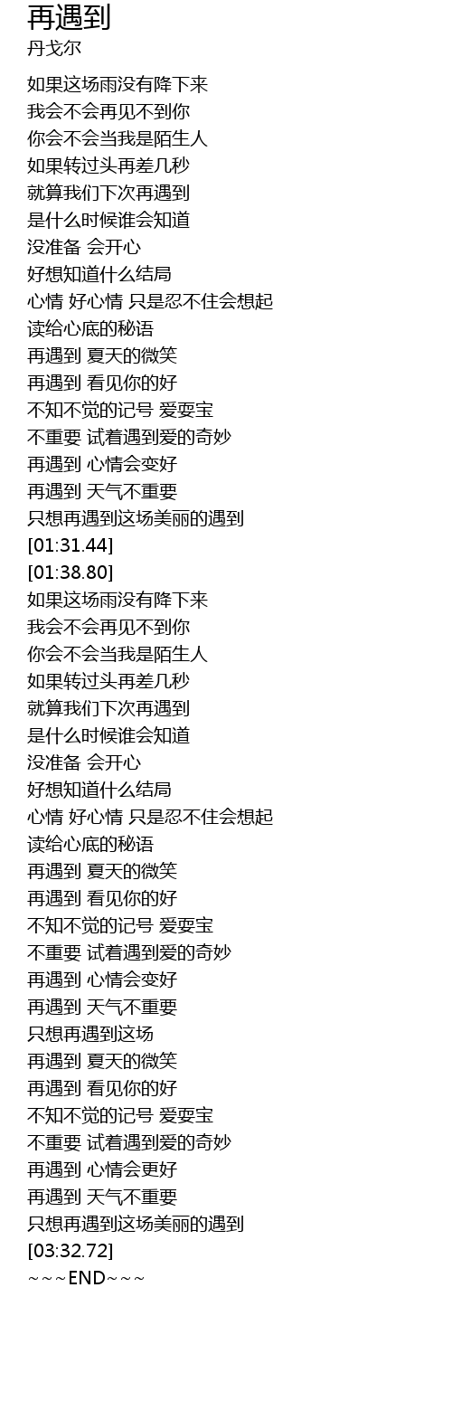 | [03:23.44] | 只想再遇到这场美丽的遇到 |