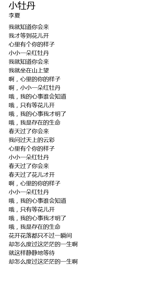 | [00:38.630] | 啊,小小一朵红牡丹 |